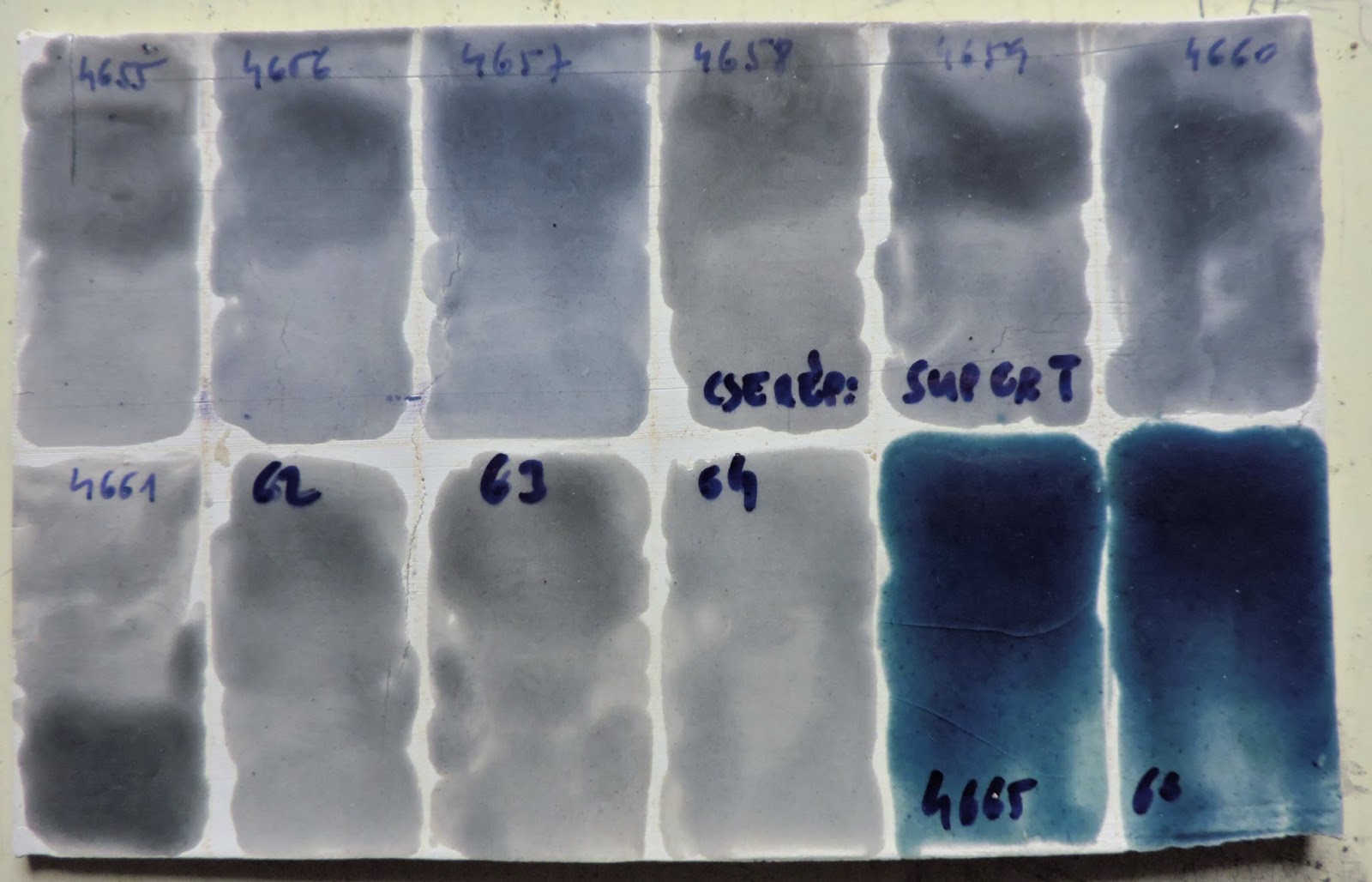 A mázpróbák és a végleges darabok fotói: ( A fotók nem egyformák ,mert párat vaku mellett készítettem. )